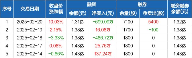 道恩股份:融资净偿还699.09万元,融资余额1.31亿元(02-20)