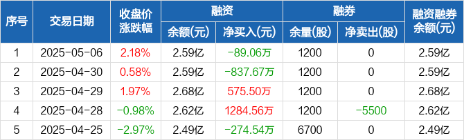 道恩股份:融资净偿还89.06万元,融资余额2.59亿元(05-06)