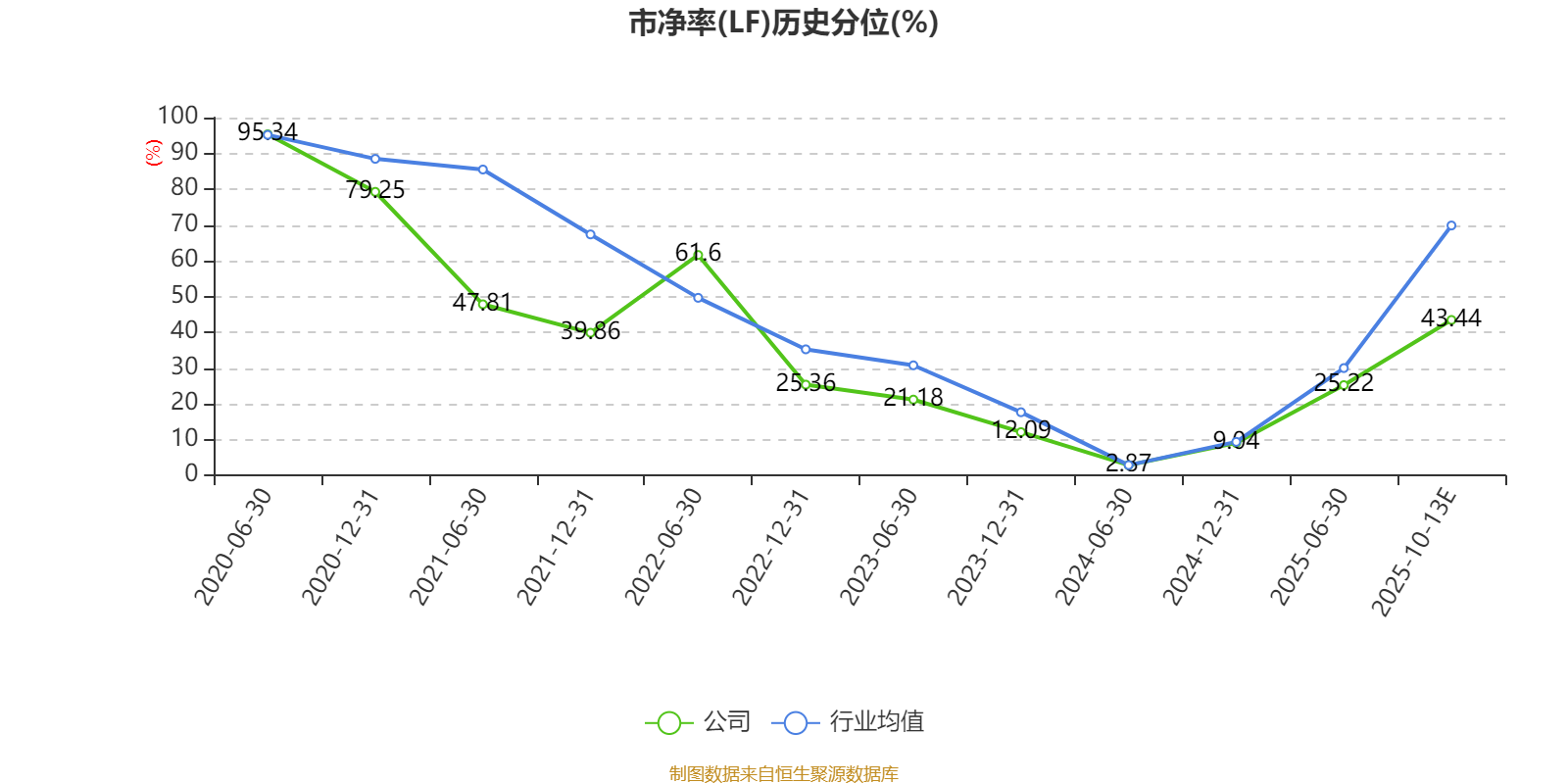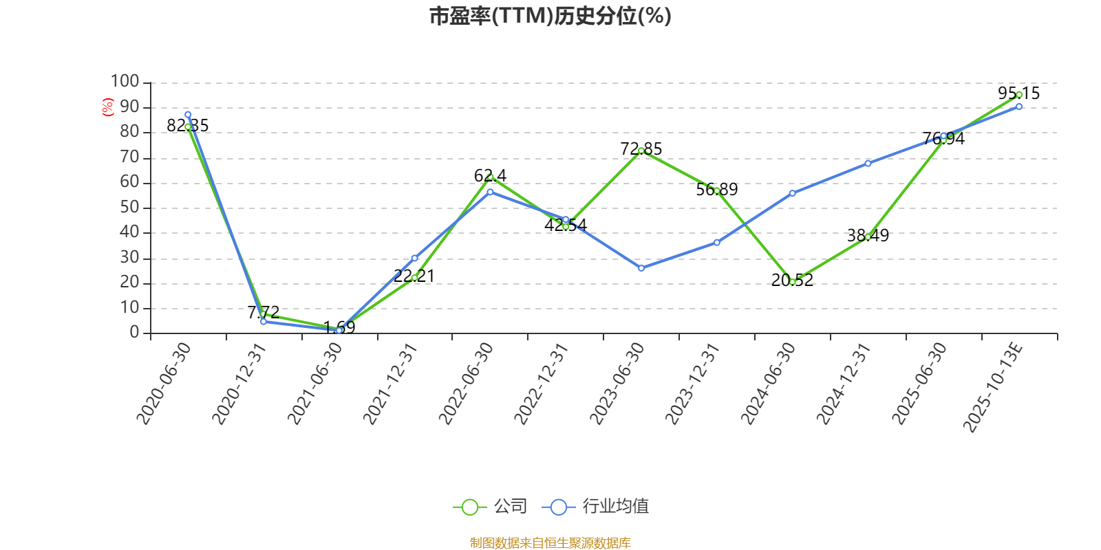 市盈率、市净率为负时,不显示当期分位数,会导致折线图中断。