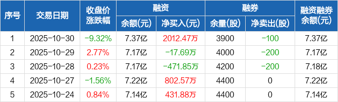 道恩股份:融资余额7.37亿元,创历史新高(10-30)