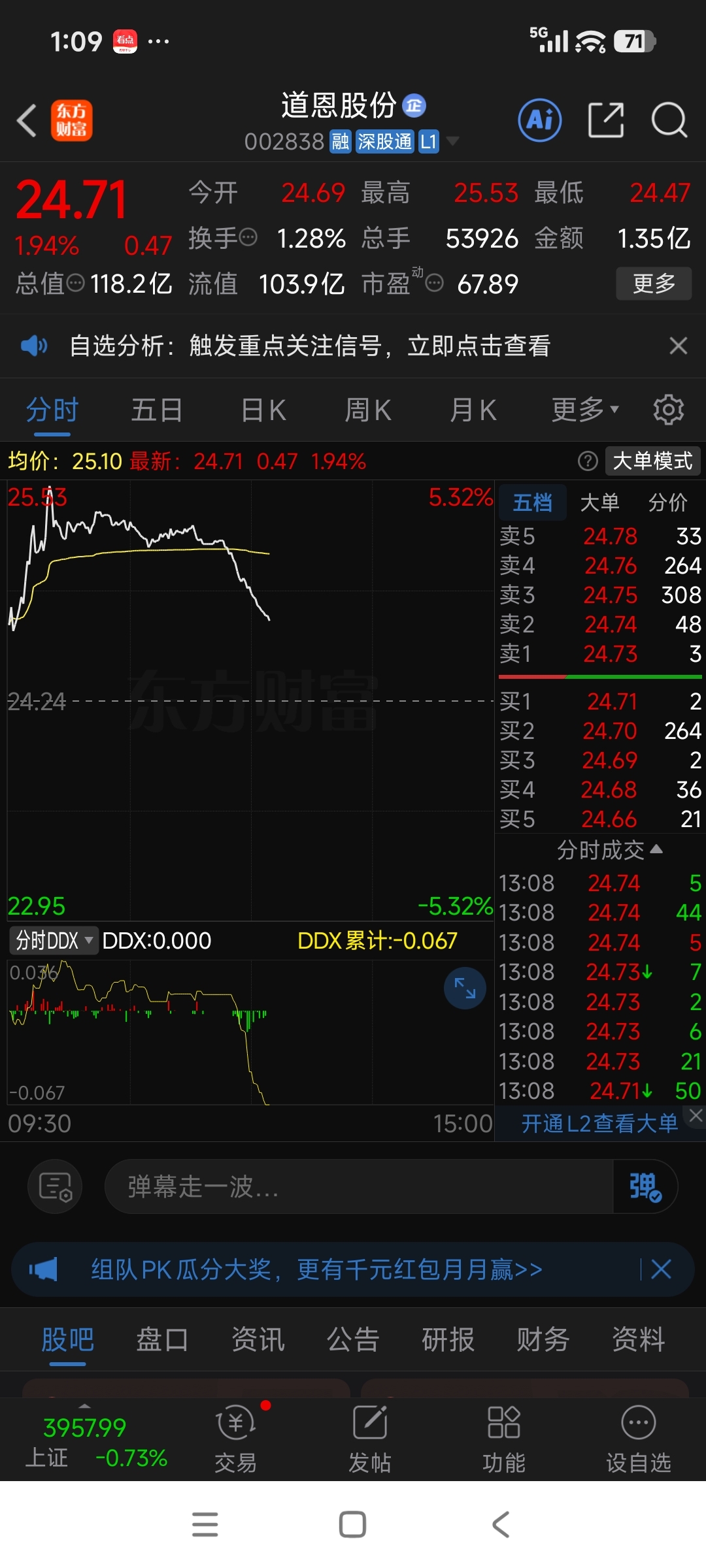 $道恩股份(SZ002838)$ 主力在跑路!
