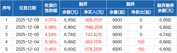 道恩股份:连续8日融资净买入累计5241.2万元(12-09)