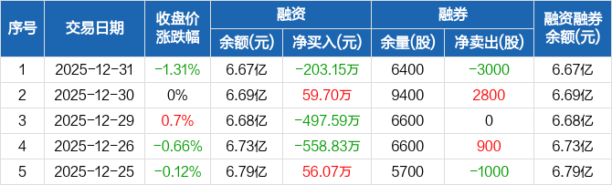 道恩股份:融资净偿还203.15万元,融资余额6.67亿元(12-31)