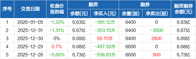 道恩股份:融资净偿还391.12万元,融资余额6.63亿元(01-05)
