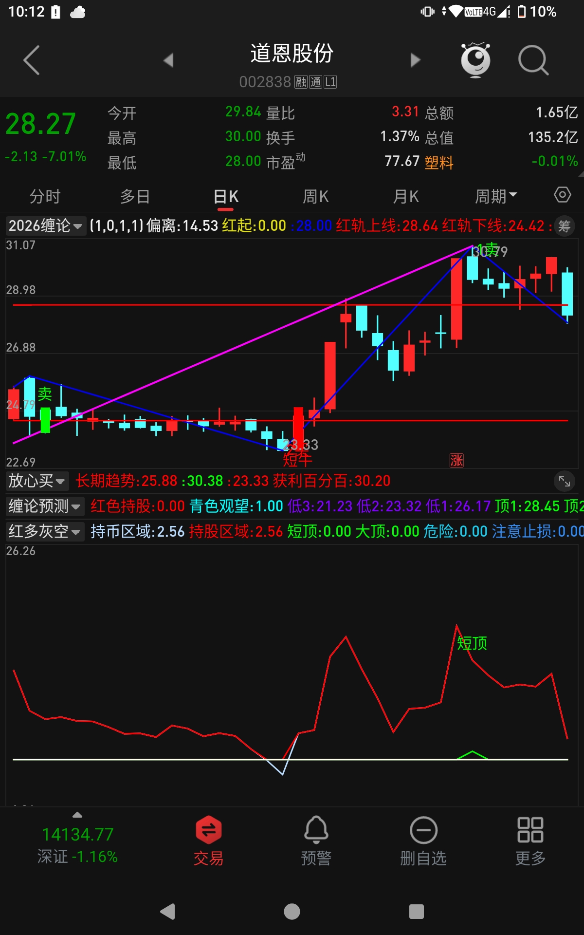 $道恩股份(SZ002838)$ 二次探顶失败当然要跌了,刺激。