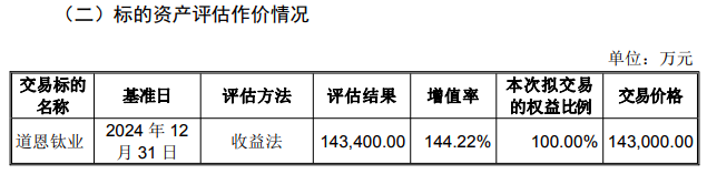 本次交易采用收益法评估结果作为定价依据,标的资产100%股权评估结果为14.34亿元,增值率144.22%,交易作价为14.30亿元。