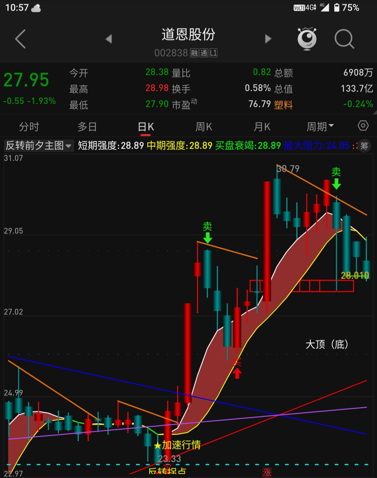 $道恩股份(SZ002838)$ 没调整完,买就套。