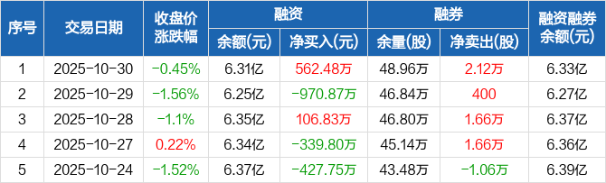 张家港行:融资净买入562.48万元,融资余额6.31亿元(10-30)