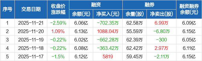 张家港行:融资净偿还702.35万元,融资余额6.06亿元(11-21)