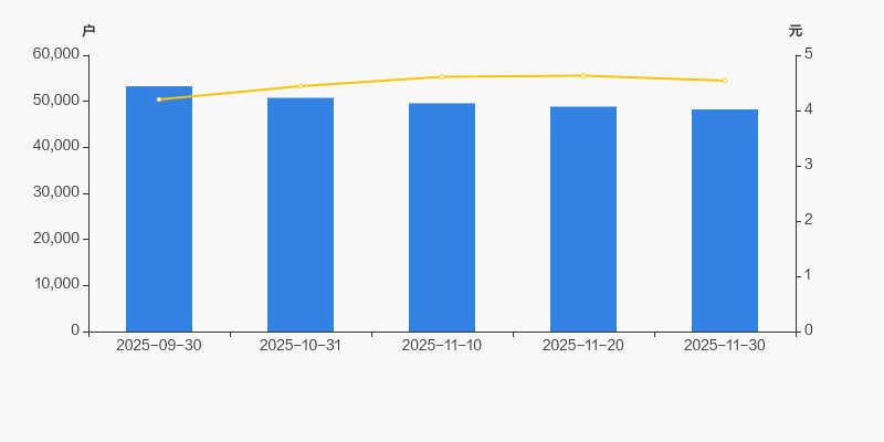 自2025年9月30日以来,公司股东户数连续4期下降,截至目前减幅为9.44%。2025年9月30日至2025年11月30日区间股价上涨8.03%。