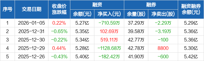 张家港行:融资净偿还710.59万元,融资余额5.27亿元(01-05)