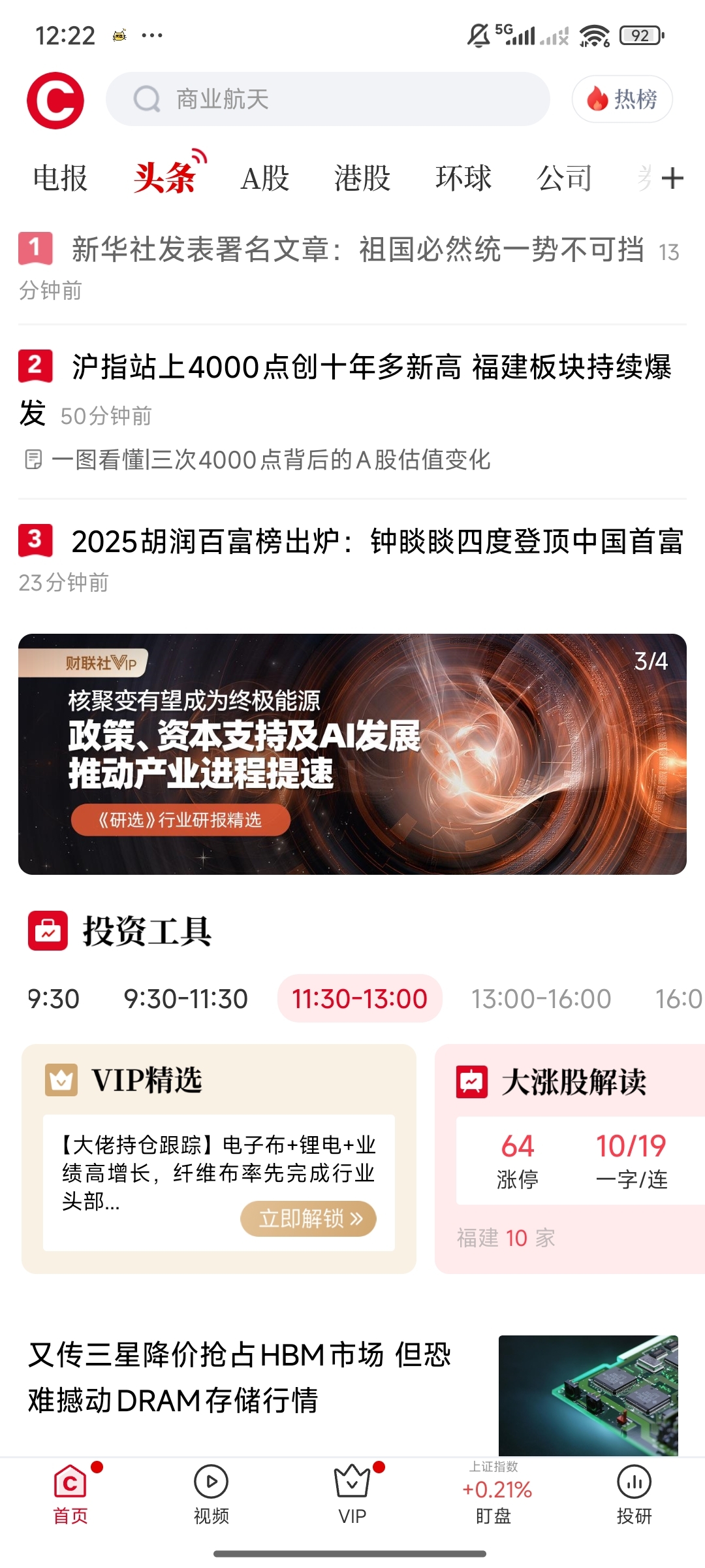 午间头条,下午统一、平潭、国统涨停的情况下,你涨1个点就行,要求不高,毕竟你最拉