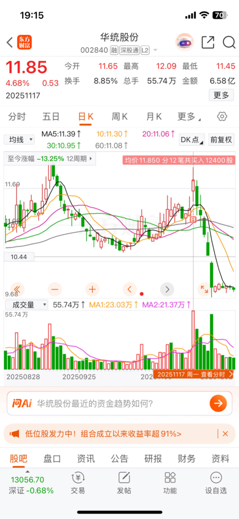 $华统股份(SZ002840)$ 兄弟们我还在,均线没上去占时没补仓。几天没冒泡,担心兄弟们以为我割肉走了,今天不忙来上个图,说明我还在。