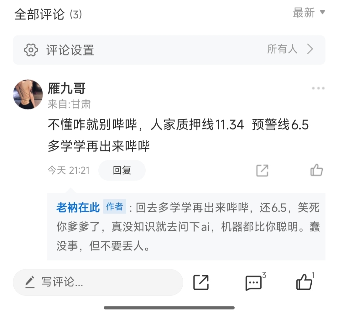 温馨提示: 1.根据《证券法》规定,禁止编造、传播虚假信息或者误导性信息,扰乱证券市场;2.用户在本社区发表的所有资料、言论等仅代表个人观点,与本网站立场无关,不对您构成任何投资建议。用户应基于自己的独立判断,自行决定证券投资并承担相应风险。《东方财富社区管理规定》