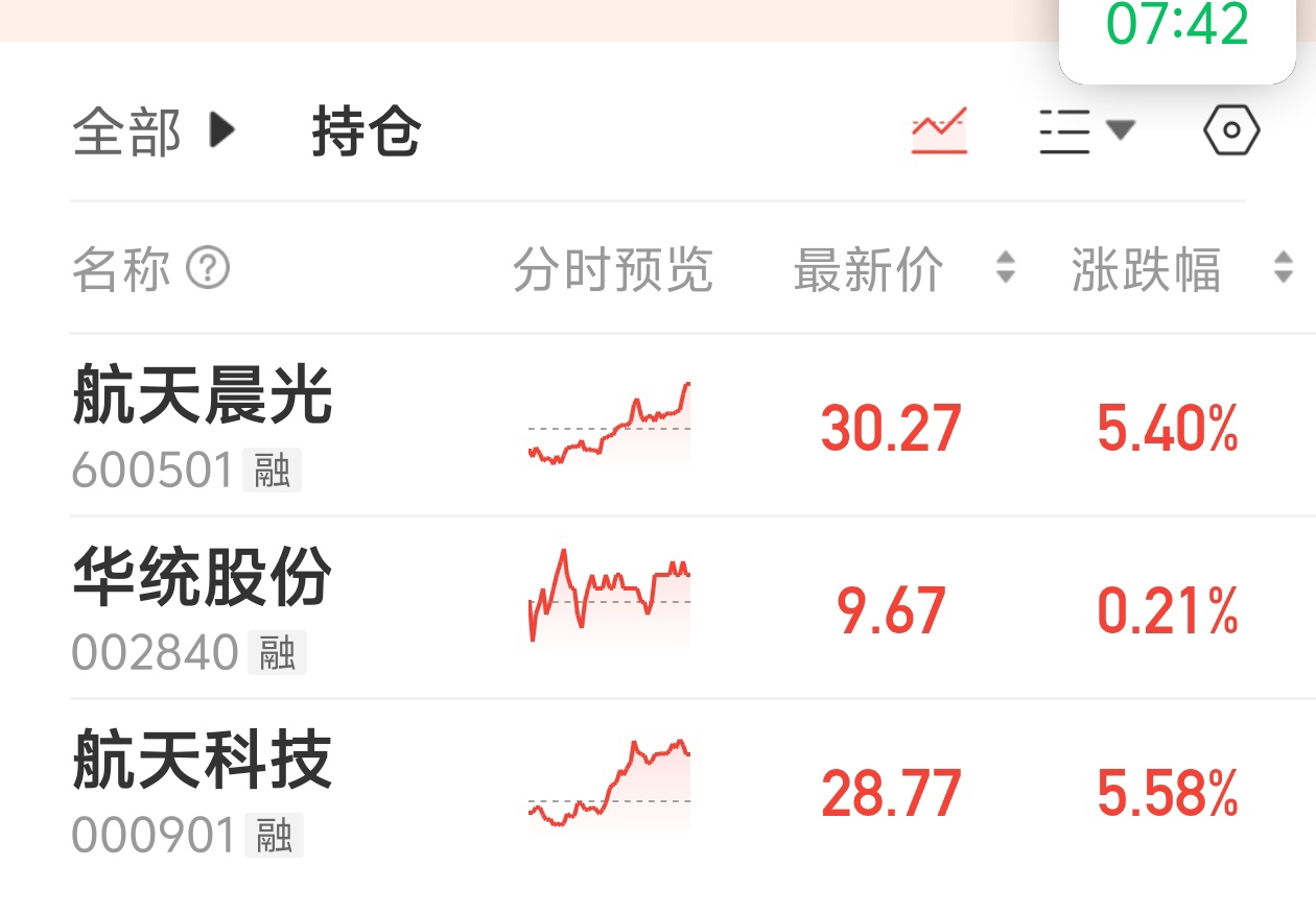 $华统股份(SZ002840)$ 看我的两个航天,又涨停了,哈哈,华统的宝子们,羡慕吗!华统耽误你们的是时间,金钱,人生!