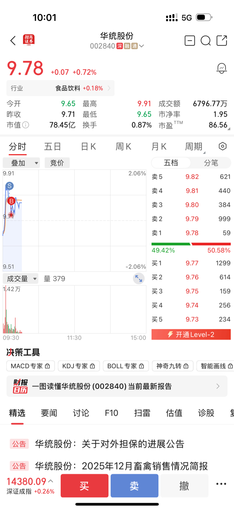 $华统股份(SZ002840)$ 继续观察,一股不加一股不卖,等待走出趋势