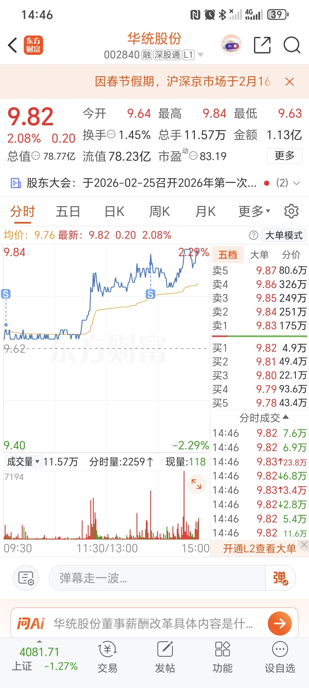 $华统股份(SZ002840)$ 新年快乐,落袋为安