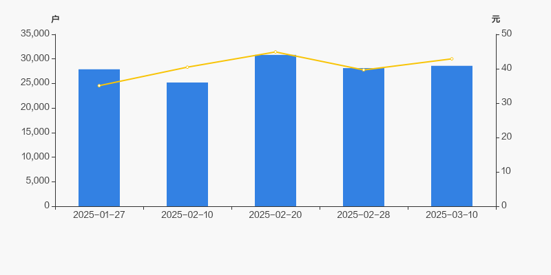 截至2025年3月10日,公司最新总股本为6.96亿股,其中流通股本为5.21亿股。户均持有流通股数量由上期的1.85万股下降至1.82万股,户均流通市值78.17万元。