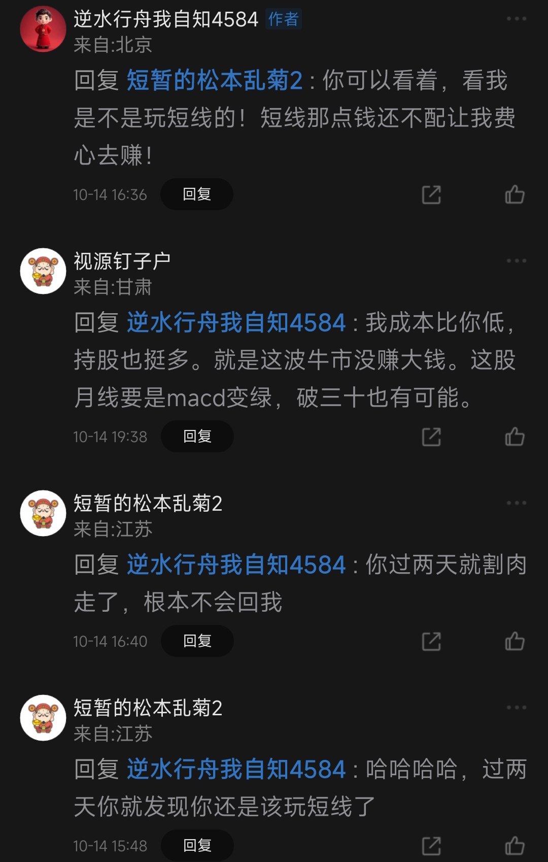 这货前几天说自己不是玩短线的,一副装叉样,哈哈哈哈