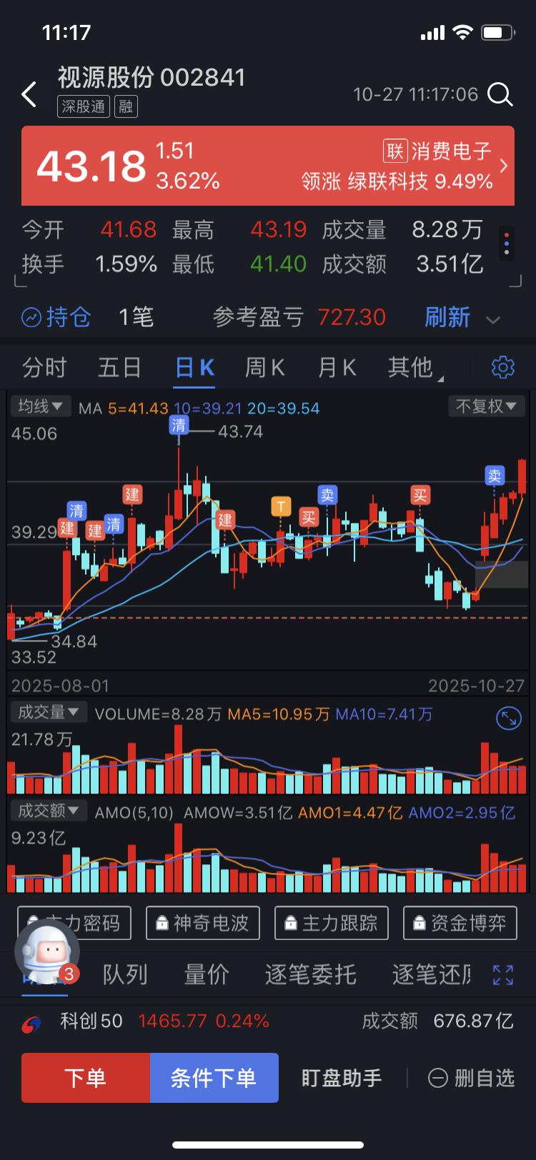$视源股份(SZ002841)$ 挂43.73清仓,希望今天可以成交