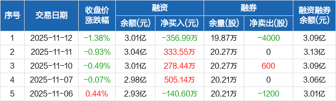 视源股份:融资净偿还356.99万元,融资余额3.01亿元(11-12)