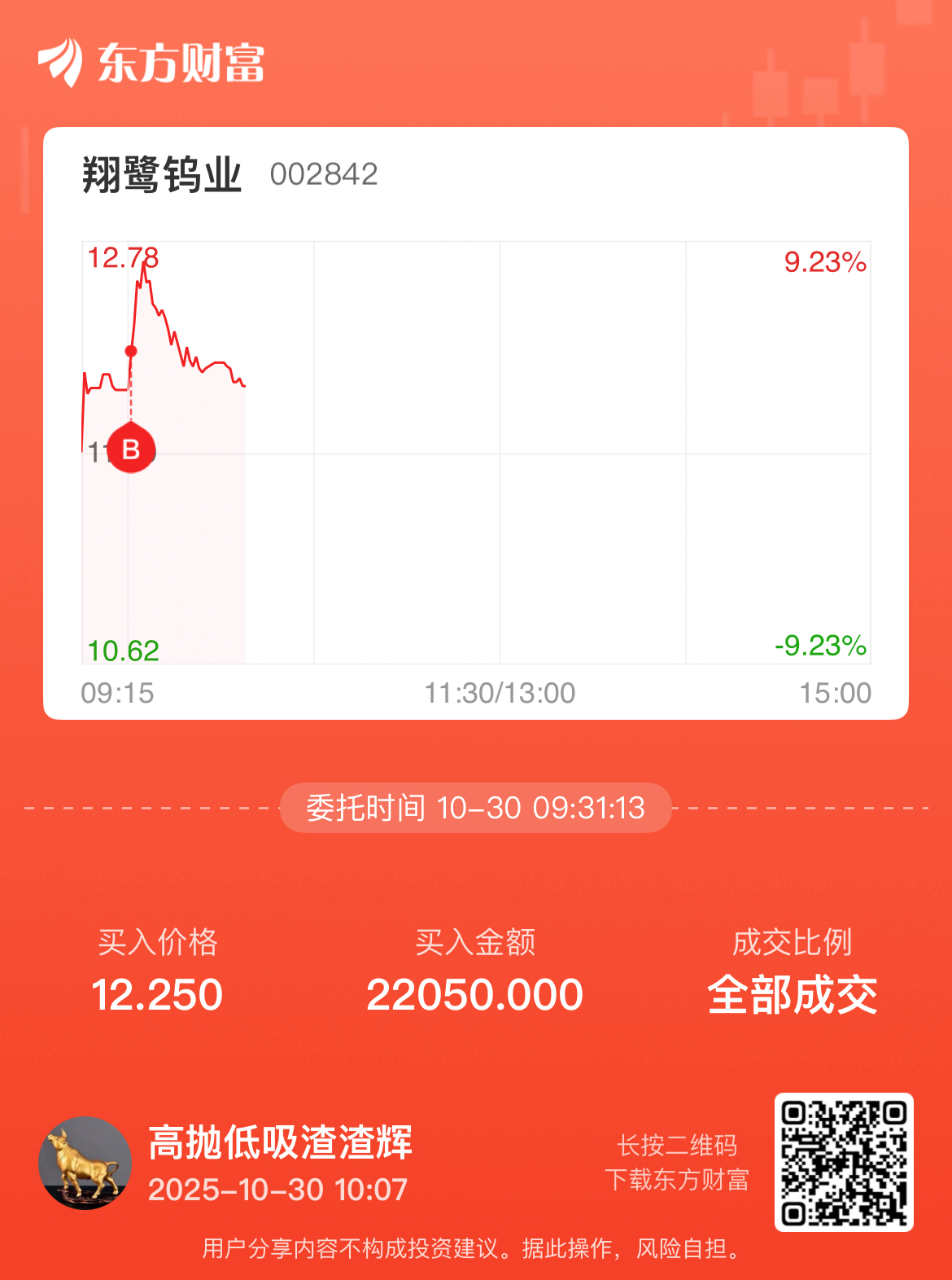 温馨提示: 1.根据《证券法》规定,禁止编造、传播虚假信息或者误导性信息,扰乱证券市场;2.用户在本社区发表的所有资料、言论等仅代表个人观点,与本网站立场无关,不对您构成任何投资建议。用户应基于自己的独立判断,自行决定证券投资并承担相应风险。《东方财富社区管理规定》