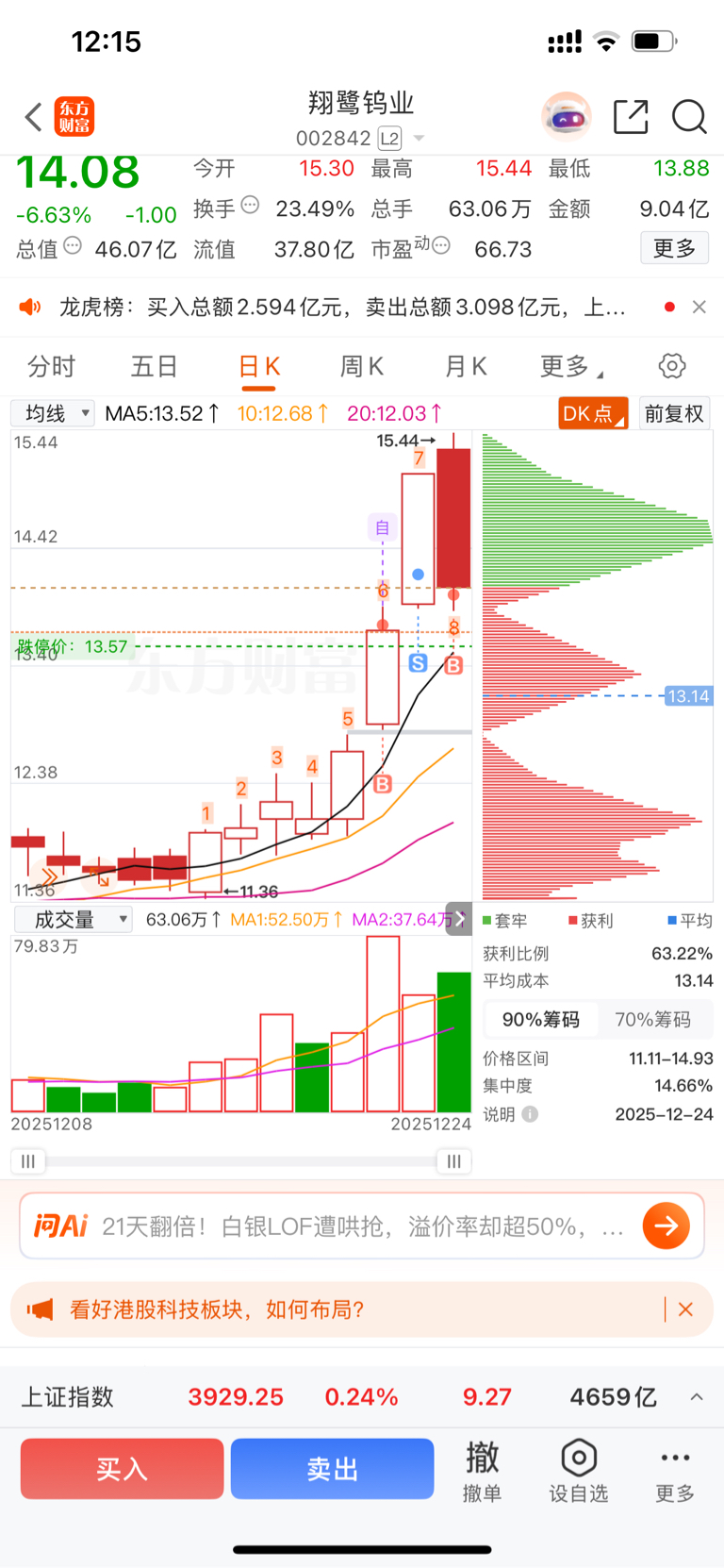 $翔鹭钨业(SZ002842)$ 前天买入,昨天板上走人,今天14块钱买回来,因为看到跌幅这么大,不符合逻辑!