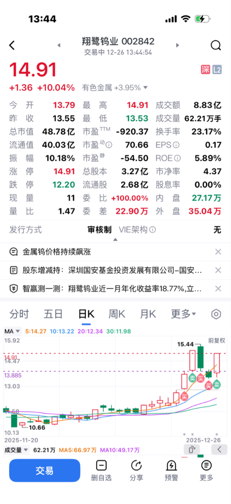 $翔鹭钨业(SZ002842)$ 叫化子吃流水席,上二桌