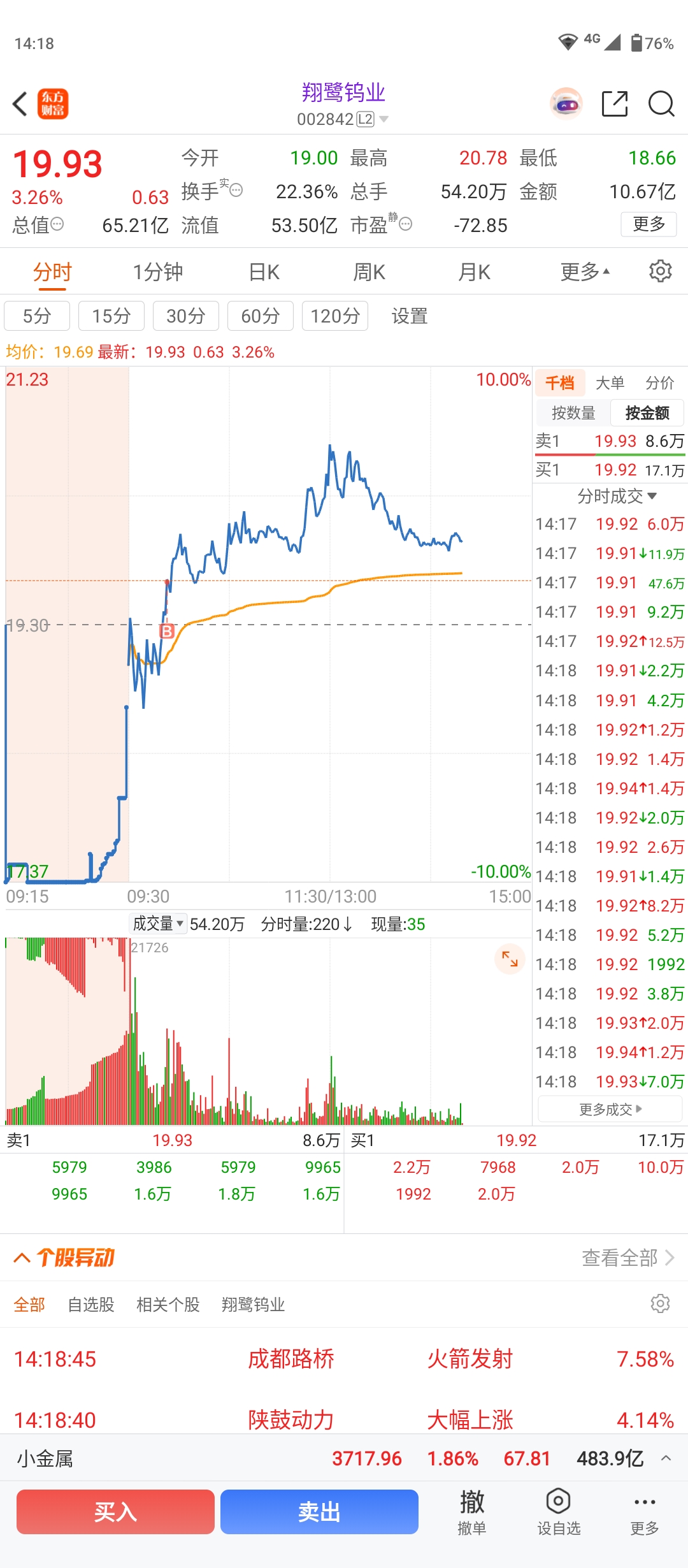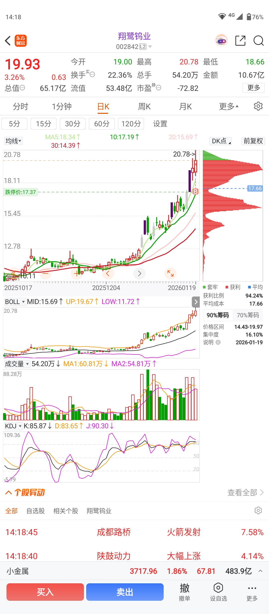 $翔鹭钨业(SZ002842)$ 顶部长长的两根上影线,可见这个位置抛压有多大了,没进的还是算了吧,免得被深套。这个位置想上去已经不可能了,对于主力来说,这个位置就是它最后抛货的时候。可惜我已经买进,只能认栽了