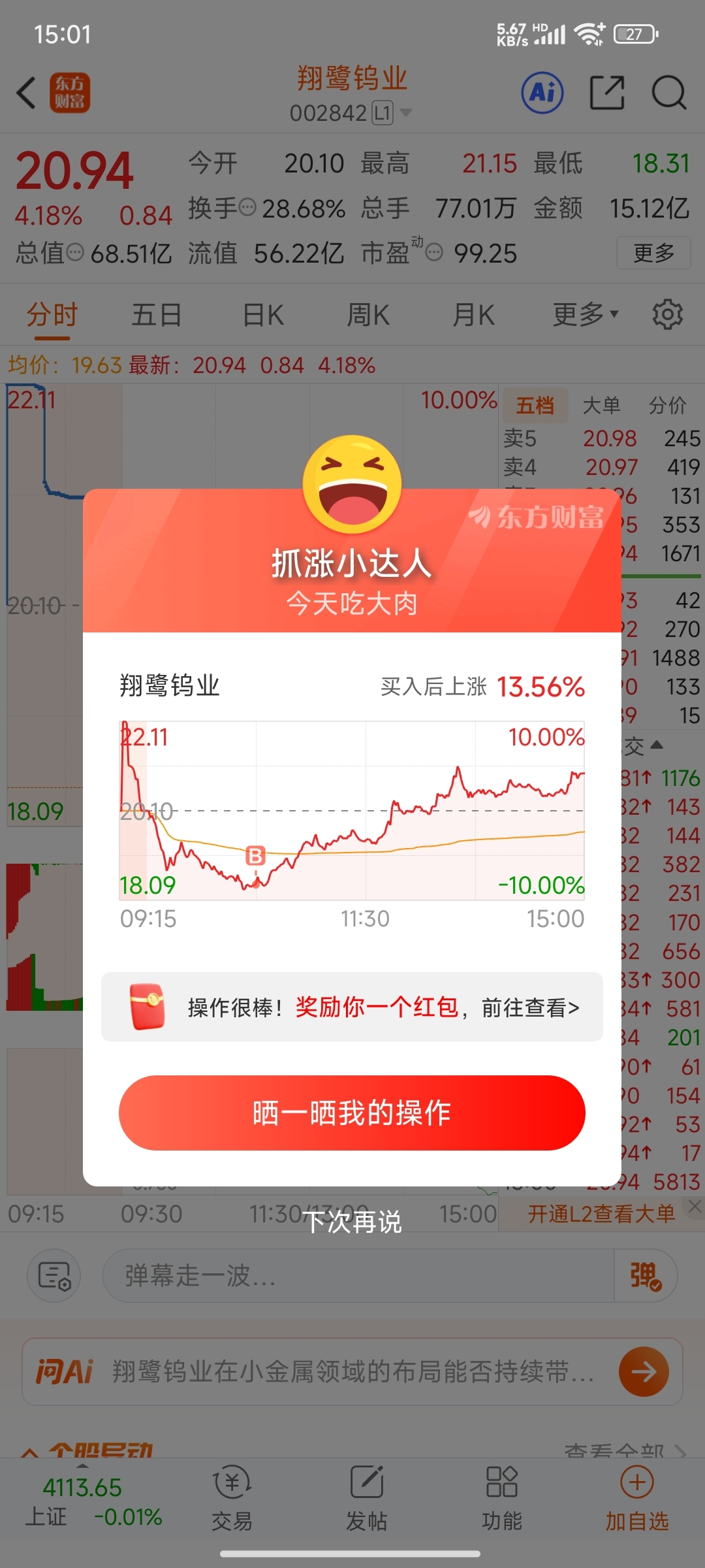 $翔鹭钨业(SZ002842)$ 吃肉了