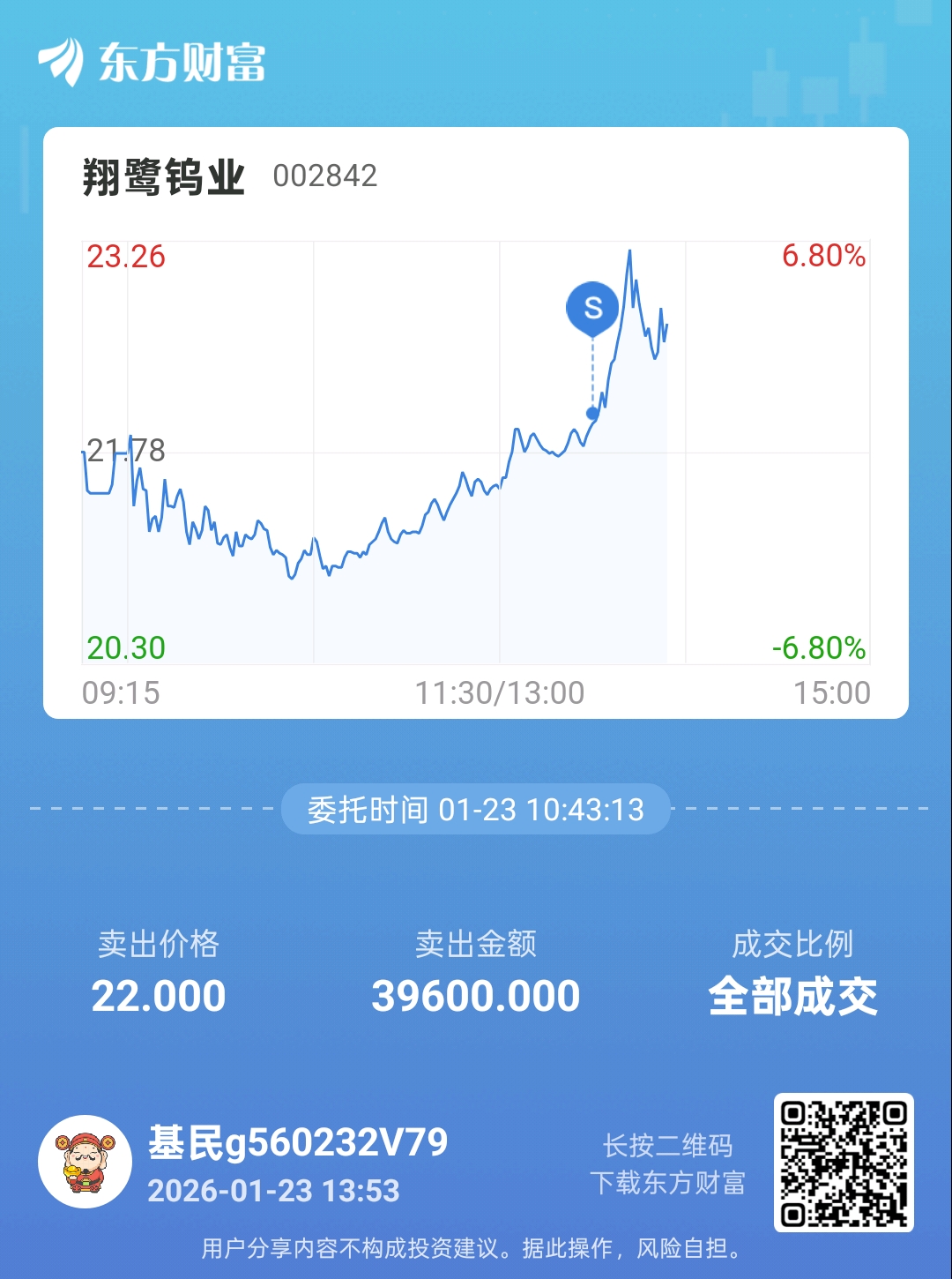 22块钱卖飞…早知道不提前设定卖出了