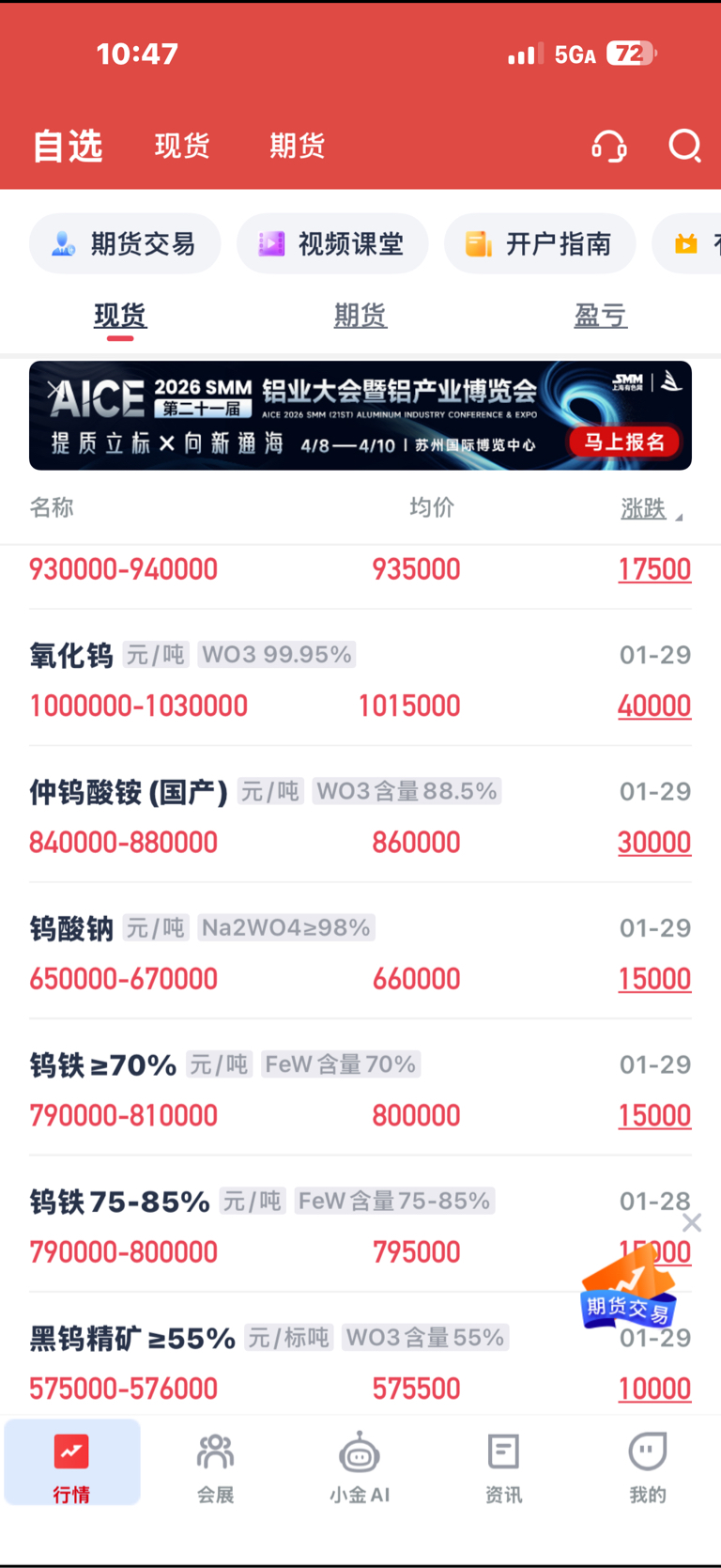 钨金今天继续上涨!