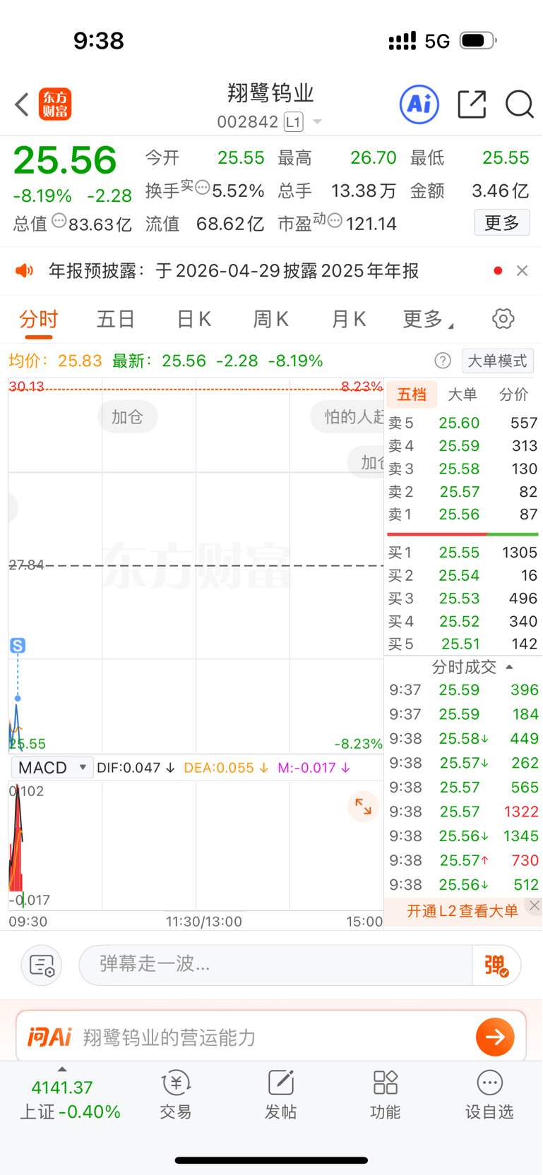 $翔鹭钨业(SZ002842)$ 这个情绪肯定是要跌几天了,这个股后期还是看好的,等企稳再回来