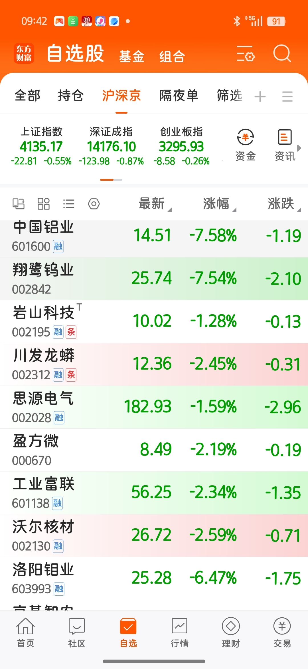 $翔鹭钨业(SZ002842)$ 整个自选也没个红的