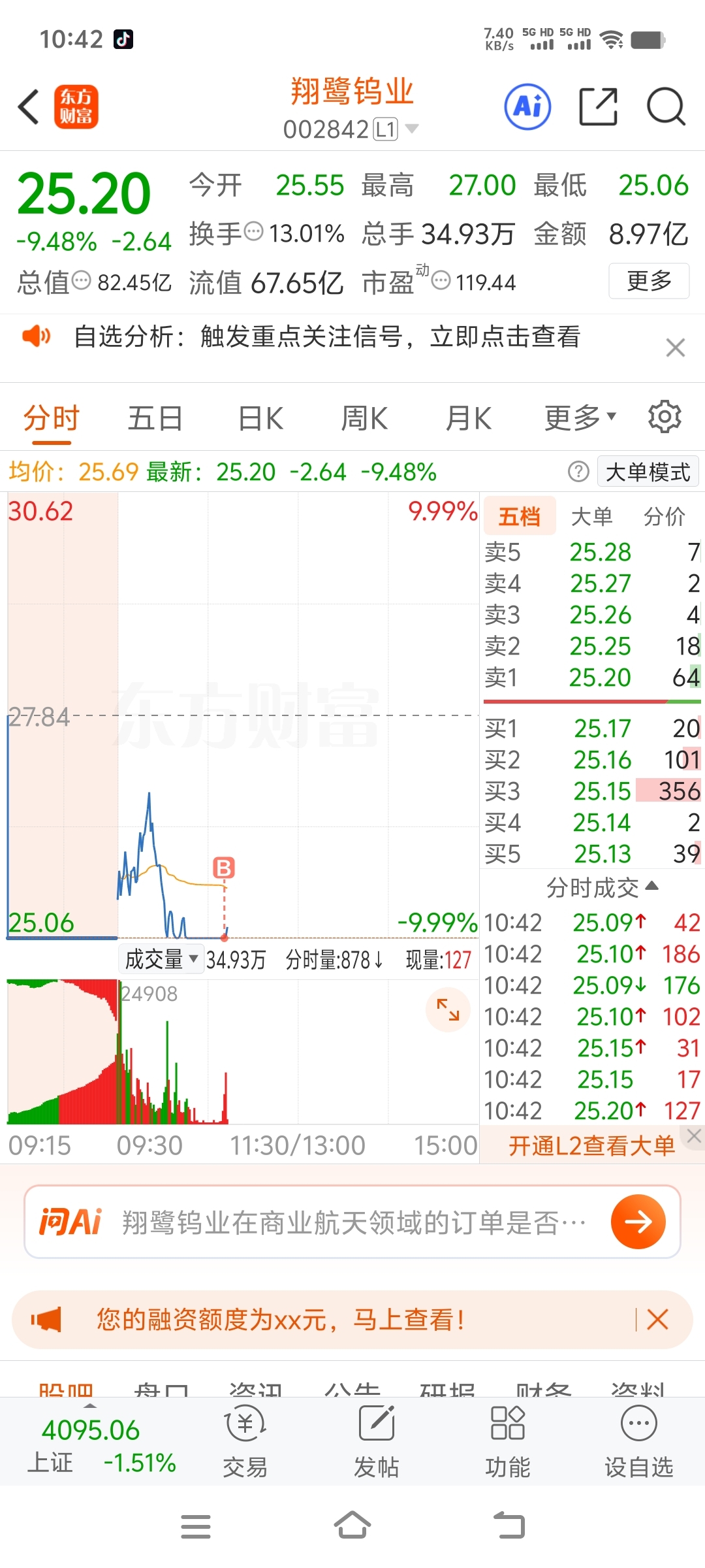 $翔鹭钨业(SZ002842)$ 周五跌停板起来的