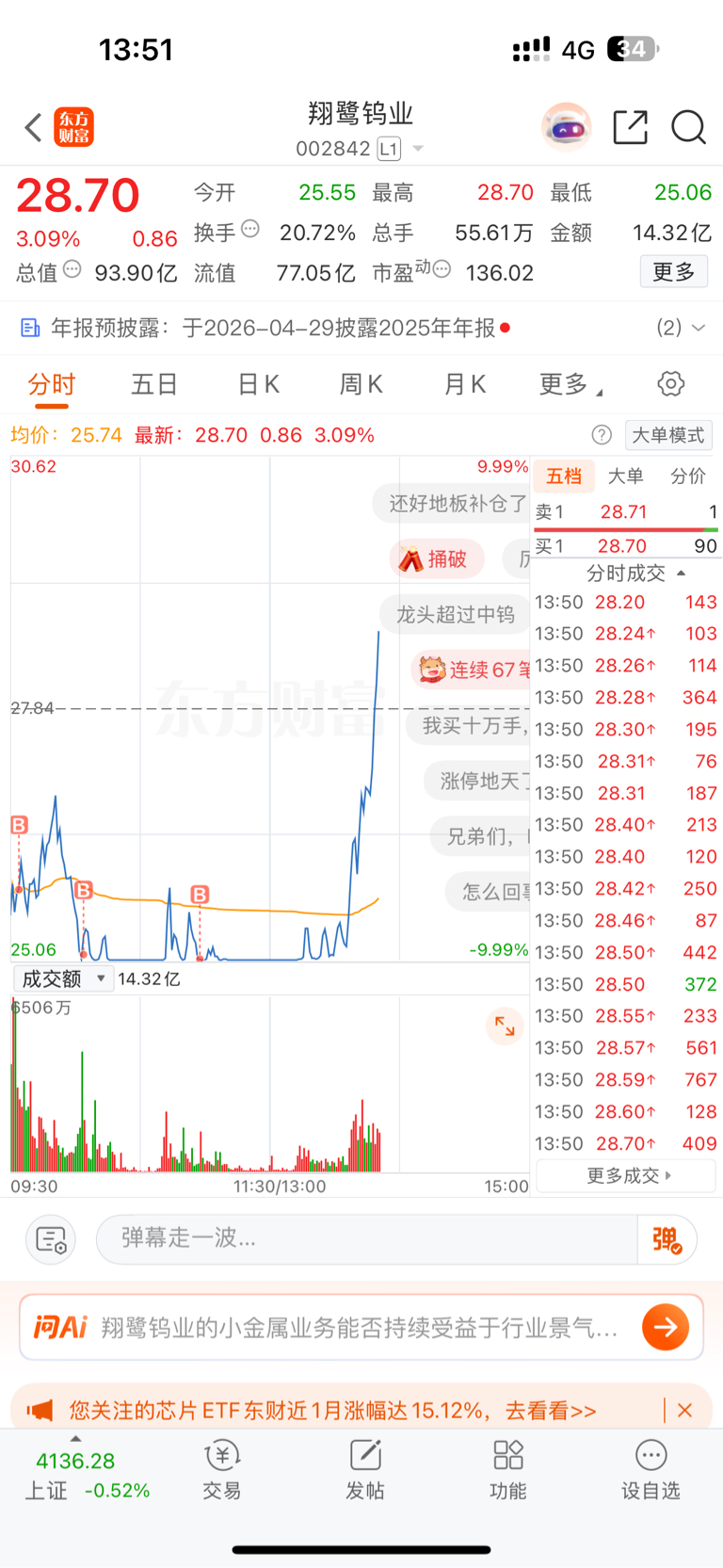 $翔鹭钨业(SZ002842)$ 周五抄底了 舒服 这票能挣钱