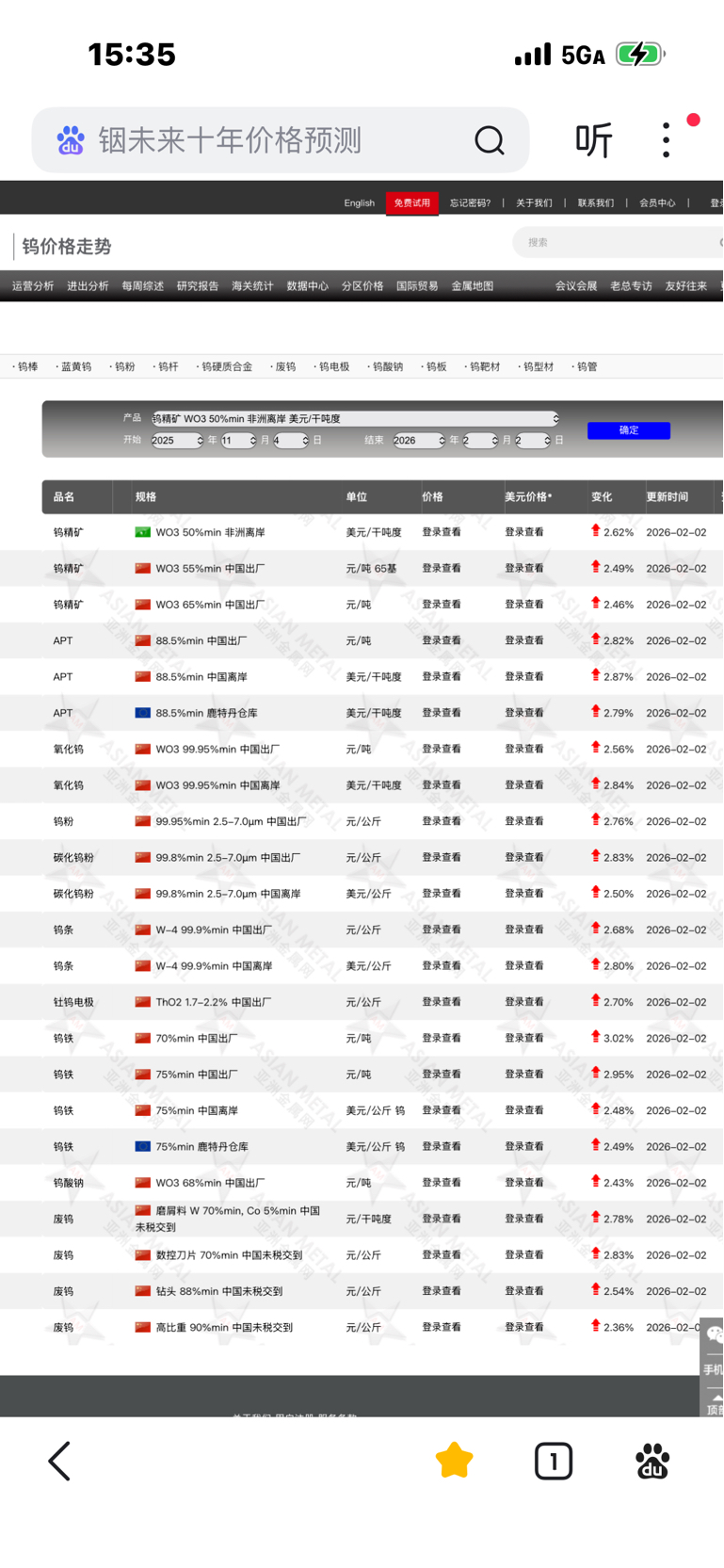 $翔鹭钨业(SZ002842)$ 2月2日国际现货钨价格继续上涨。