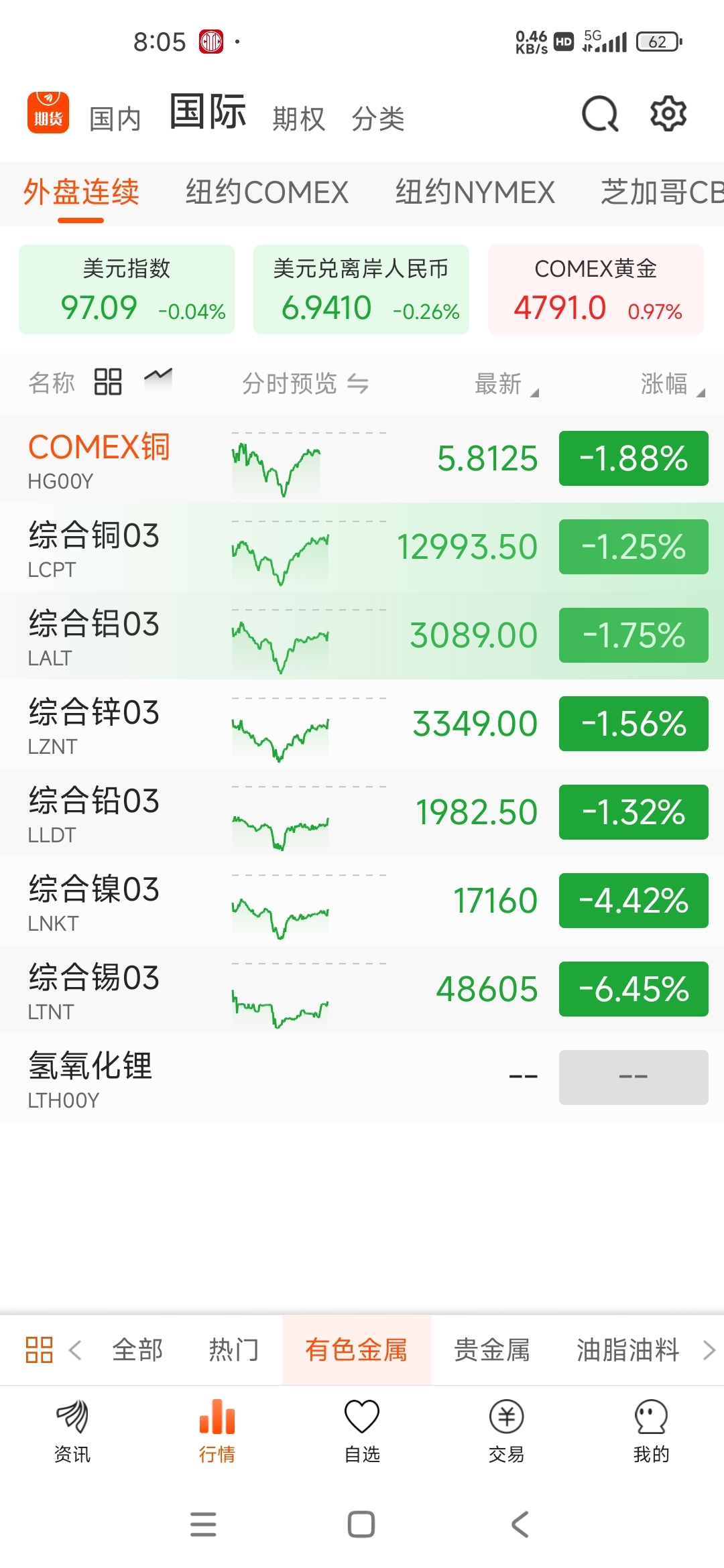 这有色金属大A三点后期货市场全拉起来了,就是不带大a玩
