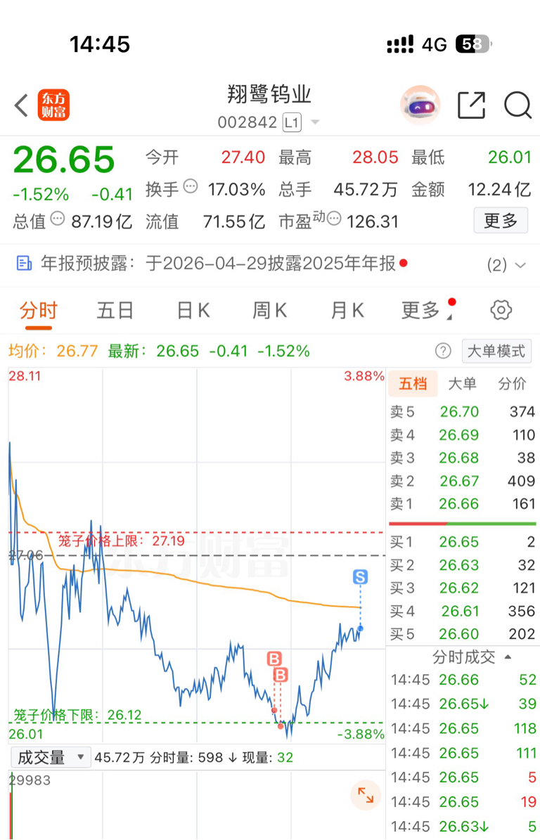 $翔鹭钨业(SZ002842)$ 做T练手,从从容容游刃有余