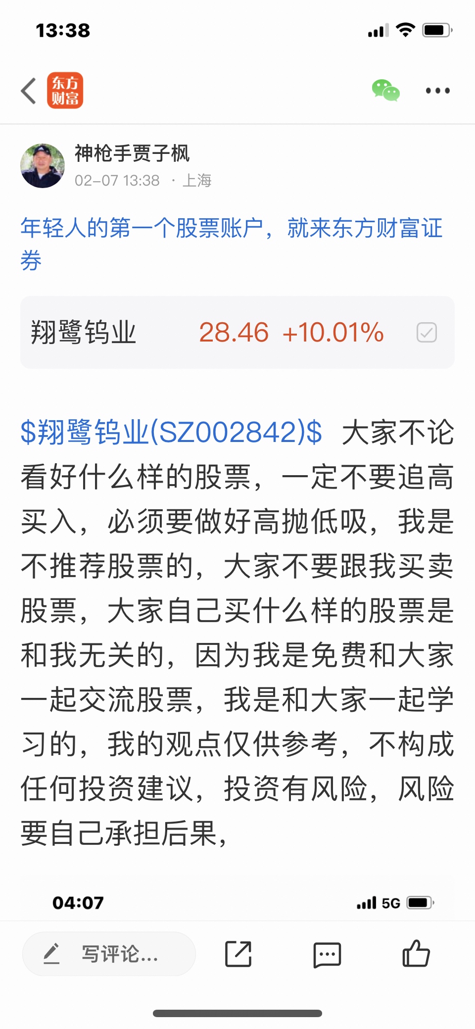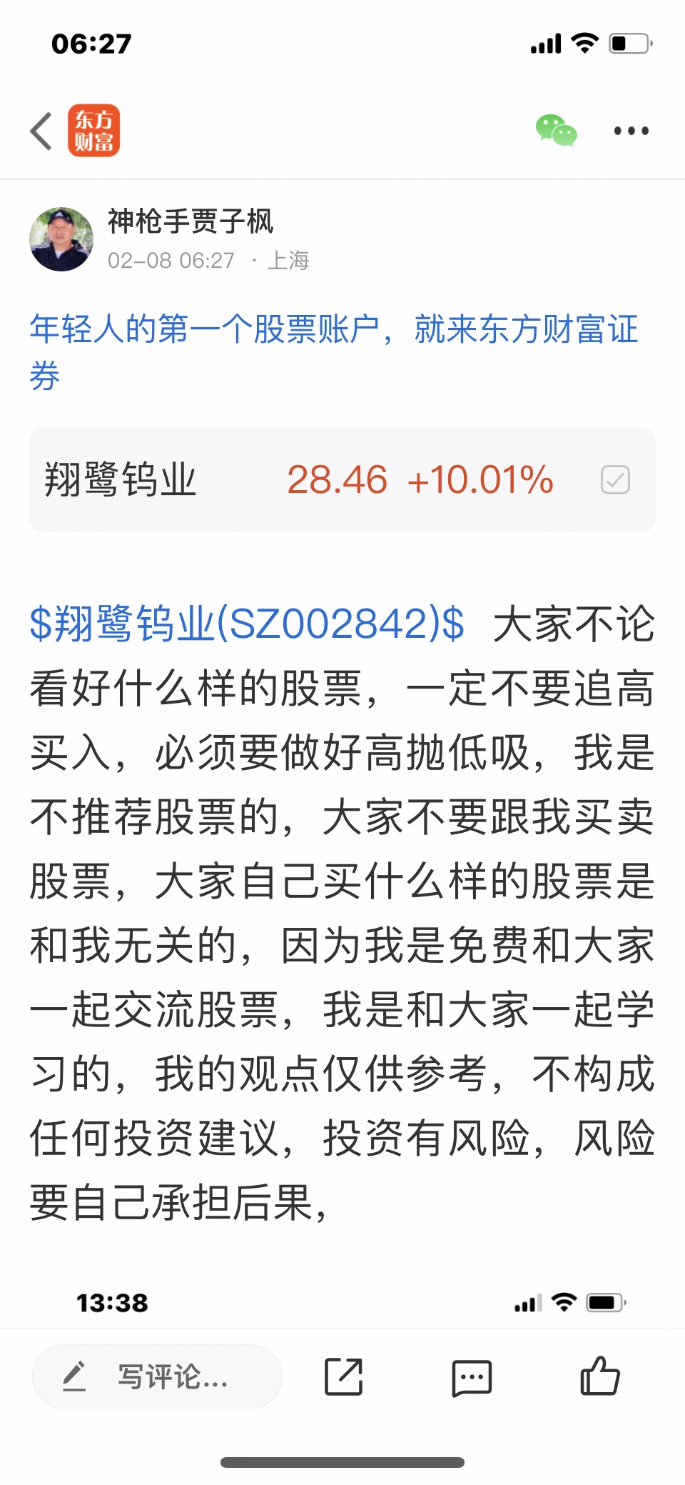 $翔鹭钨业(SZ002842)$ 我是看震荡上涨的股票,大家不要追高买入,必须要做好高抛低吸,我是不推荐股票的,大家不要跟我买卖股票,大家自己买什么样的股票是和我无关的,因为我是免费和大家一起交流股票,我是和大家一起学习的,我的观点仅供参考,投资有风险,风险要自己承担后果,