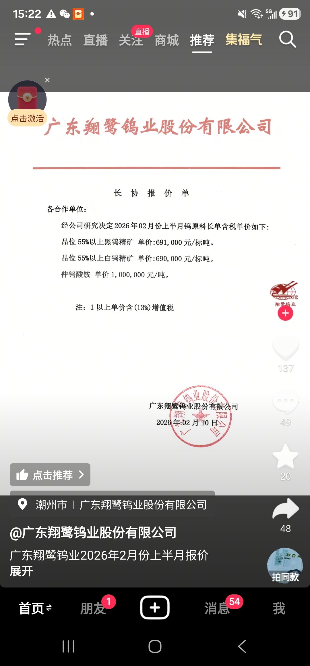 $翔鹭钨业(SZ002842)$