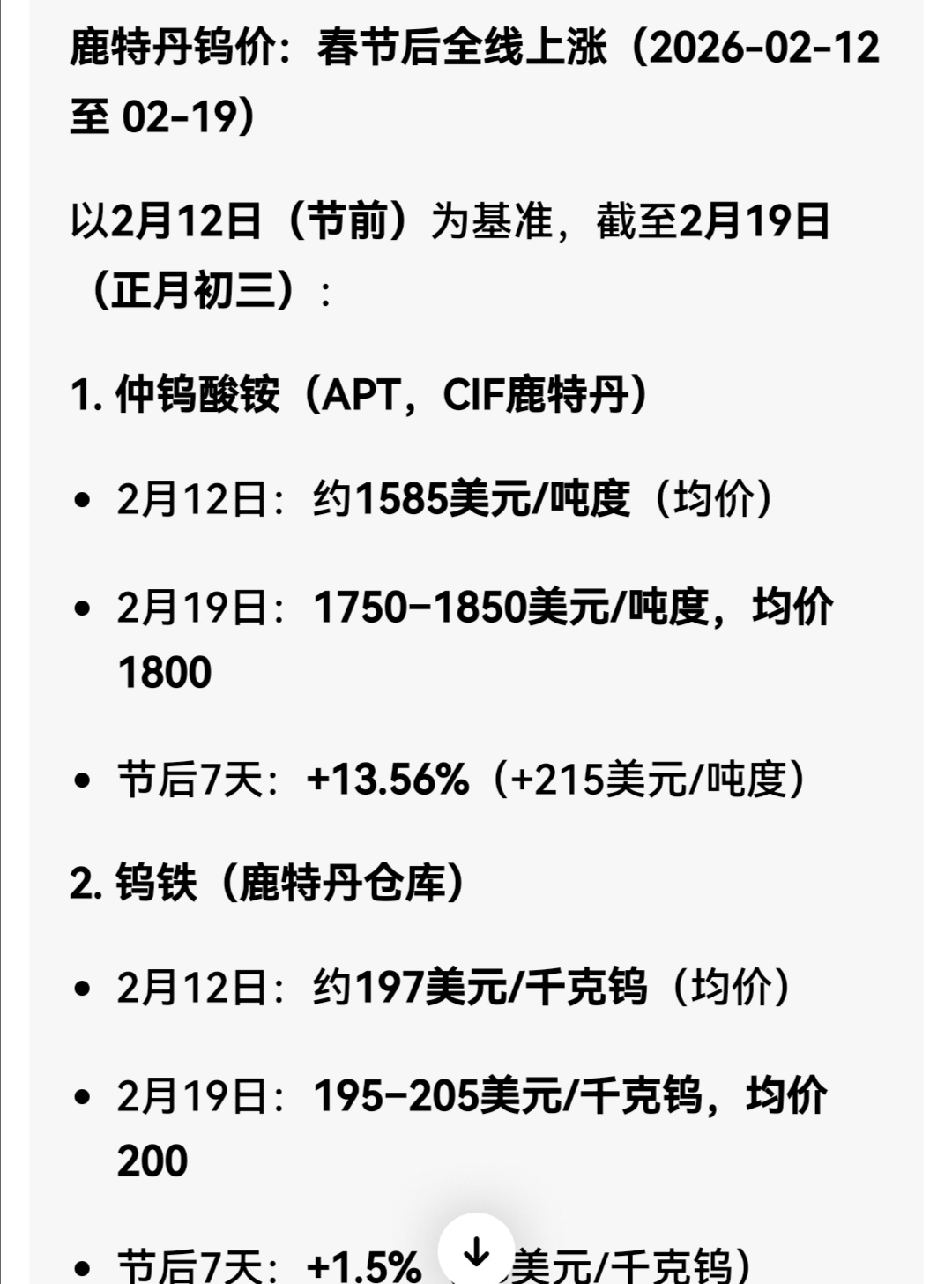 $翔鹭钨业(SZ002842)$ 鹿特丹钨价近几天涨幅情况