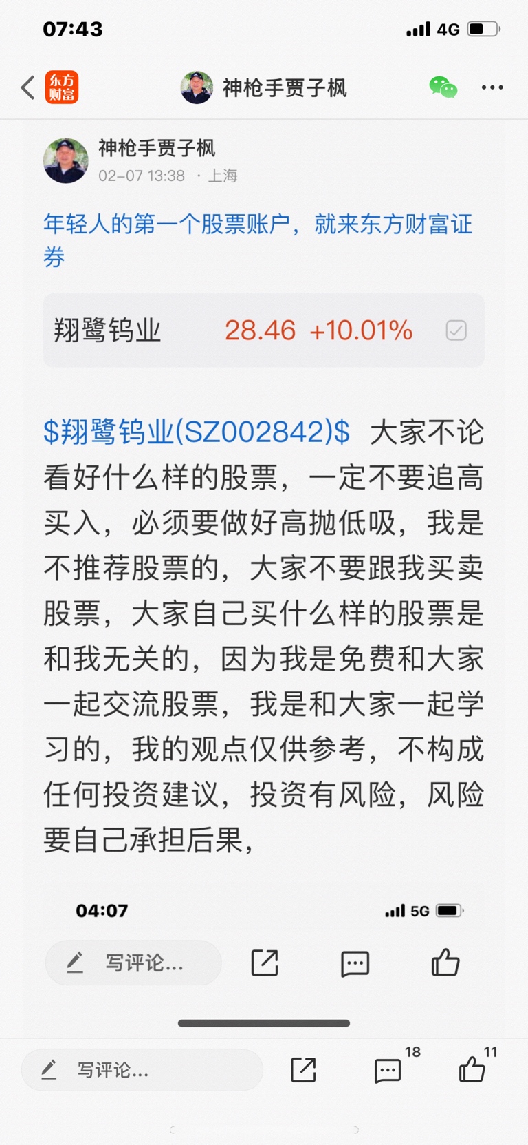 $翔鹭钨业(SZ002842)$ 这个股是我二月七号发表文章看涨的股票,这个股是我看好五大钨王中是排名第一位,我是不推荐股票的,大家不要跟我买卖股票,大家自己买什么样的股票是和我无关的,因为我发股票是和大家一起交流的,我发股票是和大家一起学习的,我的观点仅供参考,不构成任何投资建议,投资有风险,风险要自己承担后果,