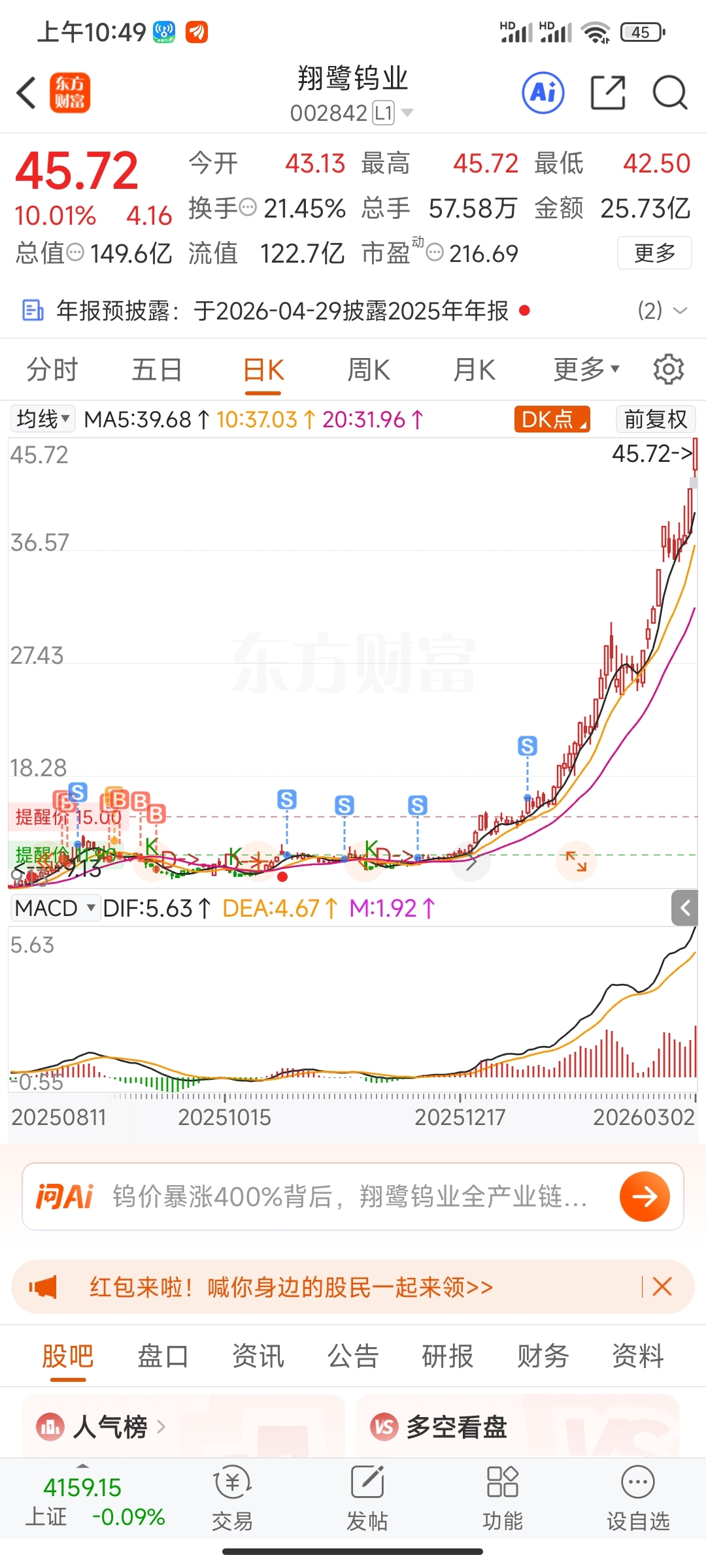 $翔鹭钨业(SZ002842)$ 哈哈哈,之前我走时就说你们要买了,有买的赚不少了。我又是一只卖完疯涨的股