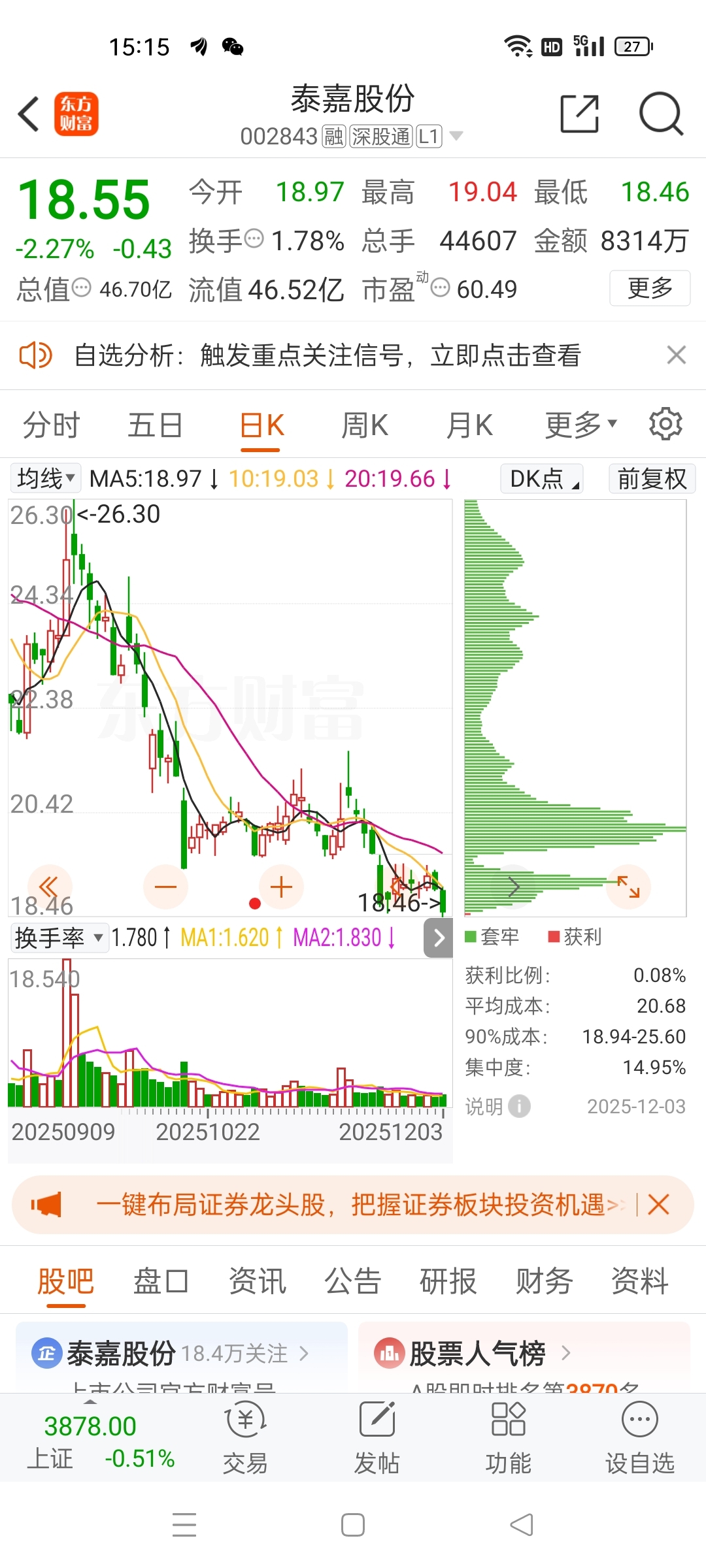 $泰嘉股份(SZ002843)$ 获利0.08%,这下全套的死死的,谁也别想出去了。