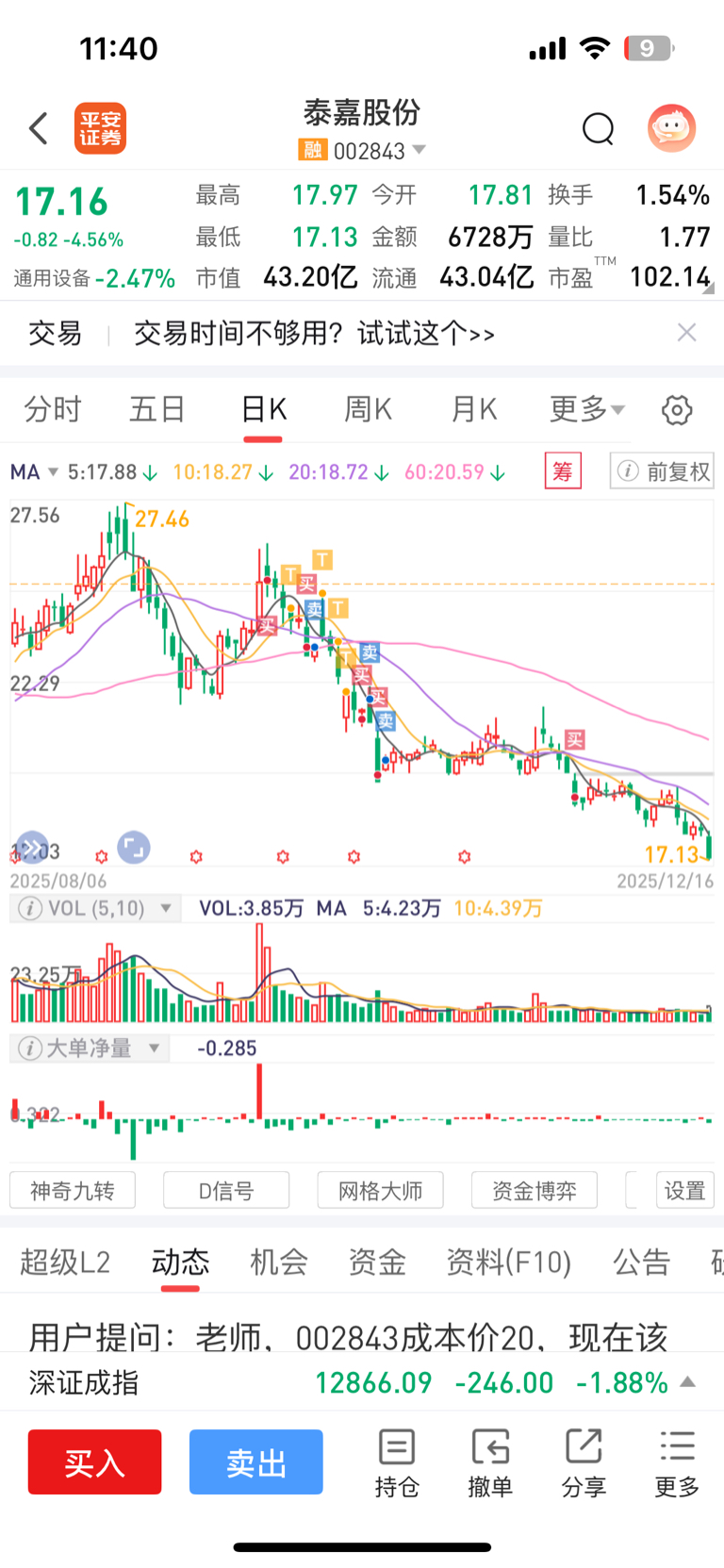 $泰嘉股份(SZ002843)$  25的本,亏5万多,跌到10块都不卖,除非收到退市通知书