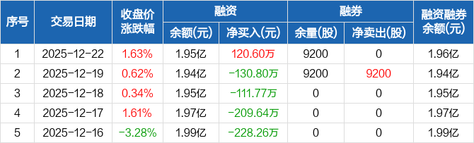 泰嘉股份:融资净买入120.6万元,融资余额1.95亿元(12-22)