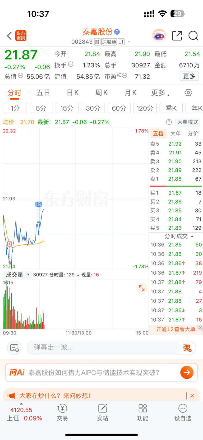 $泰嘉股份(SZ002843)$ 只能一天t一点