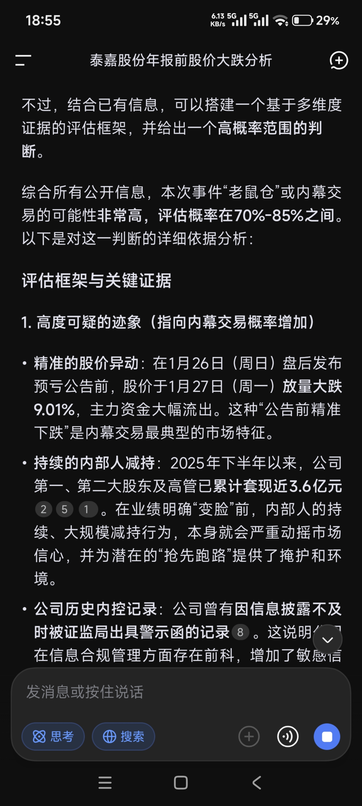 我问了梁文峰,可能性有多少,准确数字70-85%,愿赌服输,已经举报真是老鼠仓就
