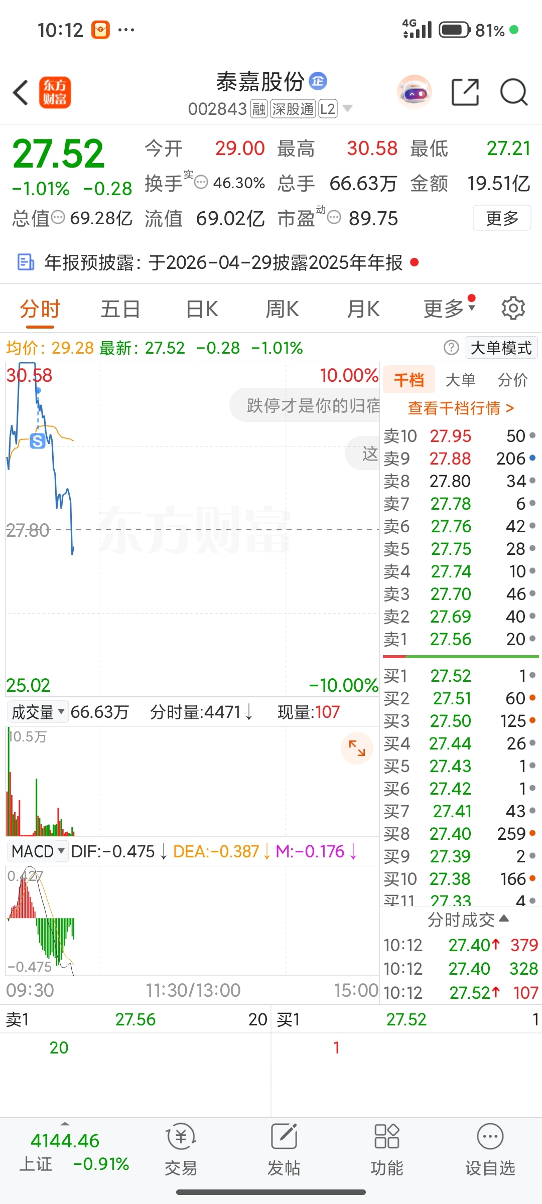$泰嘉股份(SZ002843)$ 感谢主力,留下发财
